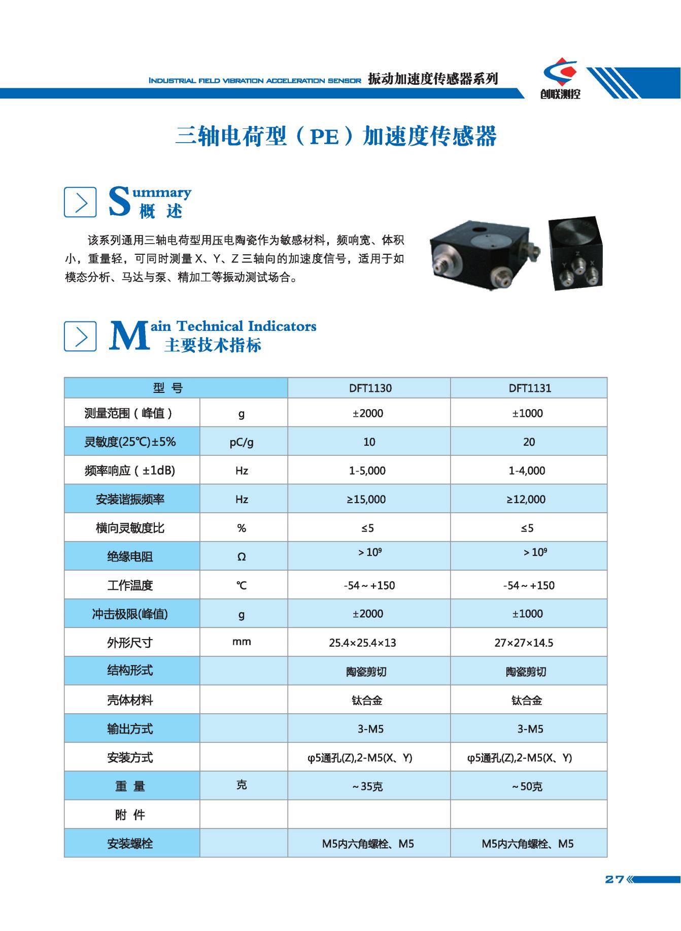 三軸電荷(PE)型加速度傳感器